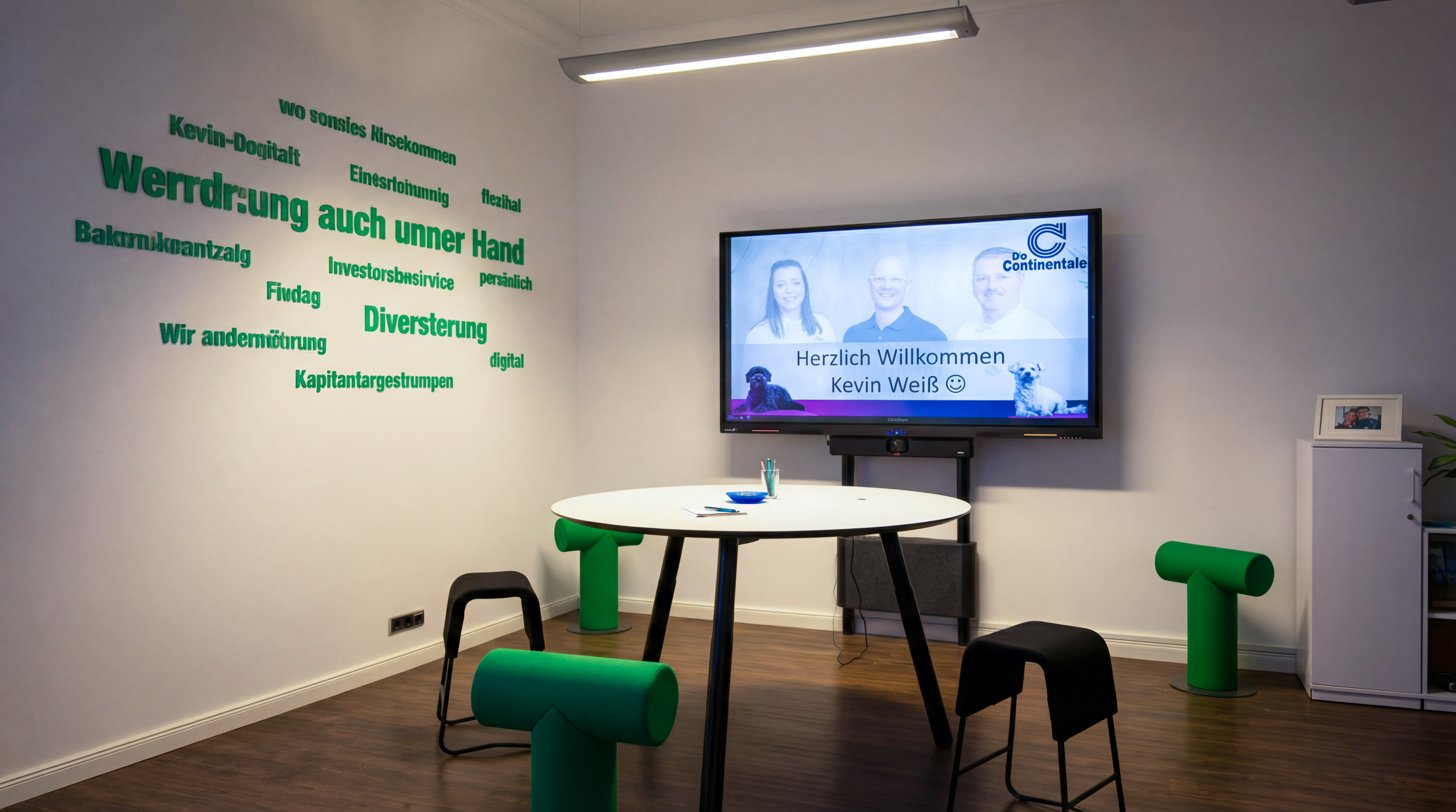 Mit der neuen Ausstattung verfügt Die Continentale, Bezirksdirektion Patrick Schmidt, nun über eine moderne, vollständig drahtlose Konferenz und Präsentationsumgebung. Das System lässt sich flexibel für Videokonferenzen, interne Meetings und Präsentationen nutzen und überzeugt durch einfache Bedienung, klare Struktur und zuverlässige Technik. Der Kunde zeigte sich mit dem Ergebnis sehr zufrieden und plant, die realisierte Lösung intern als standardisiertes Bundle weiterzuempfehlen.